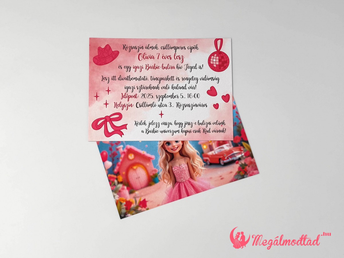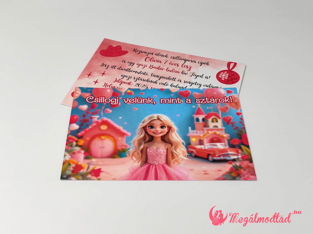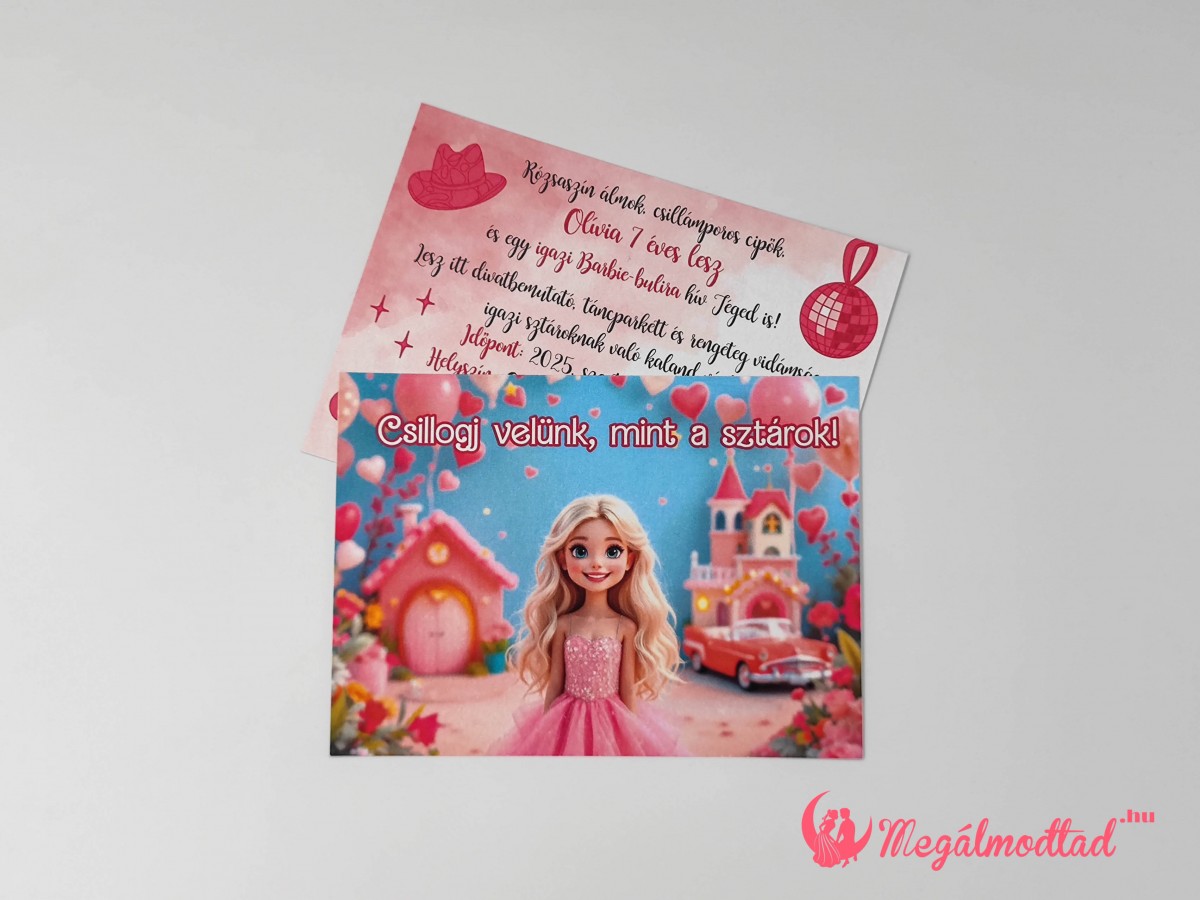 Csillogó, vidám Barbie szülinapi meghívó, ami varázslatot hoz a szülinapra!