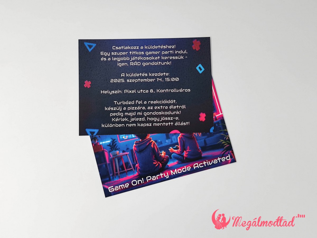 Menő gamer meghívó igazi játékrajongóknak, ahol garantáltan szintet lép a buli!
